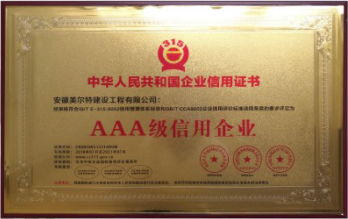 公司荣获:“国家级高新技术企业”、“科技型中小企业”、“建筑业优秀企业”、“双招双引优秀企业”等荣誉称号。