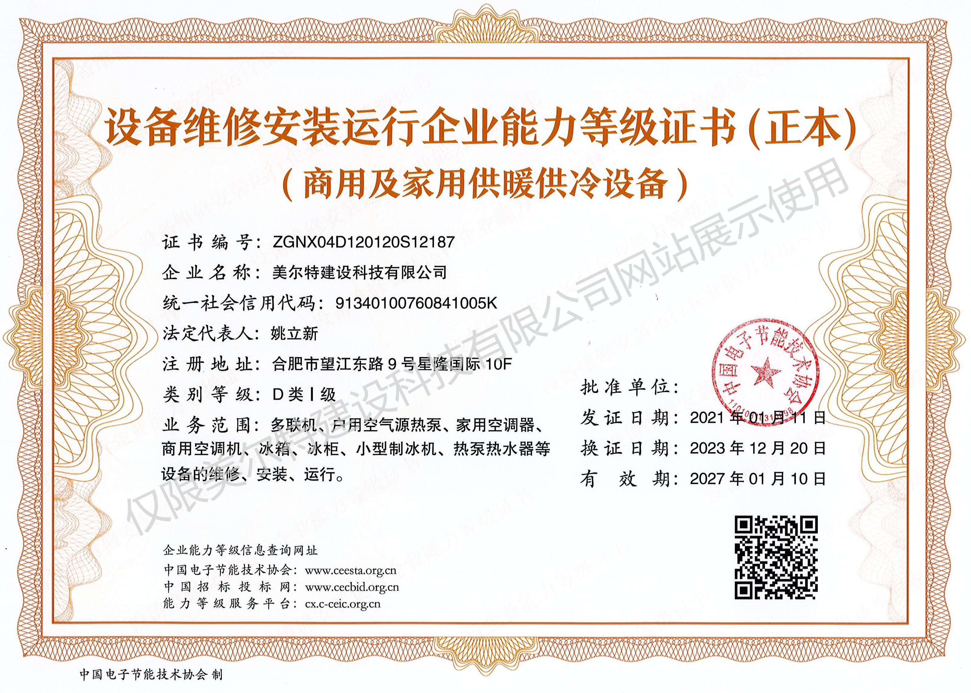 公司拥有:机电工程总承包壹级、建筑机电专业承包壹级、装修装饰专业承包壹级、消防专业承包贰级、钢结构专业承包贰级、安防叁级、防爆电气设备安装、检修、维护技术等资质证书;通过国家市场监督管理总局的质量、环境、职业健康、安全管理等体系认证及GC2特种设备生产许可证、通过国家能源局的承装(修、试)电力设施许可证。