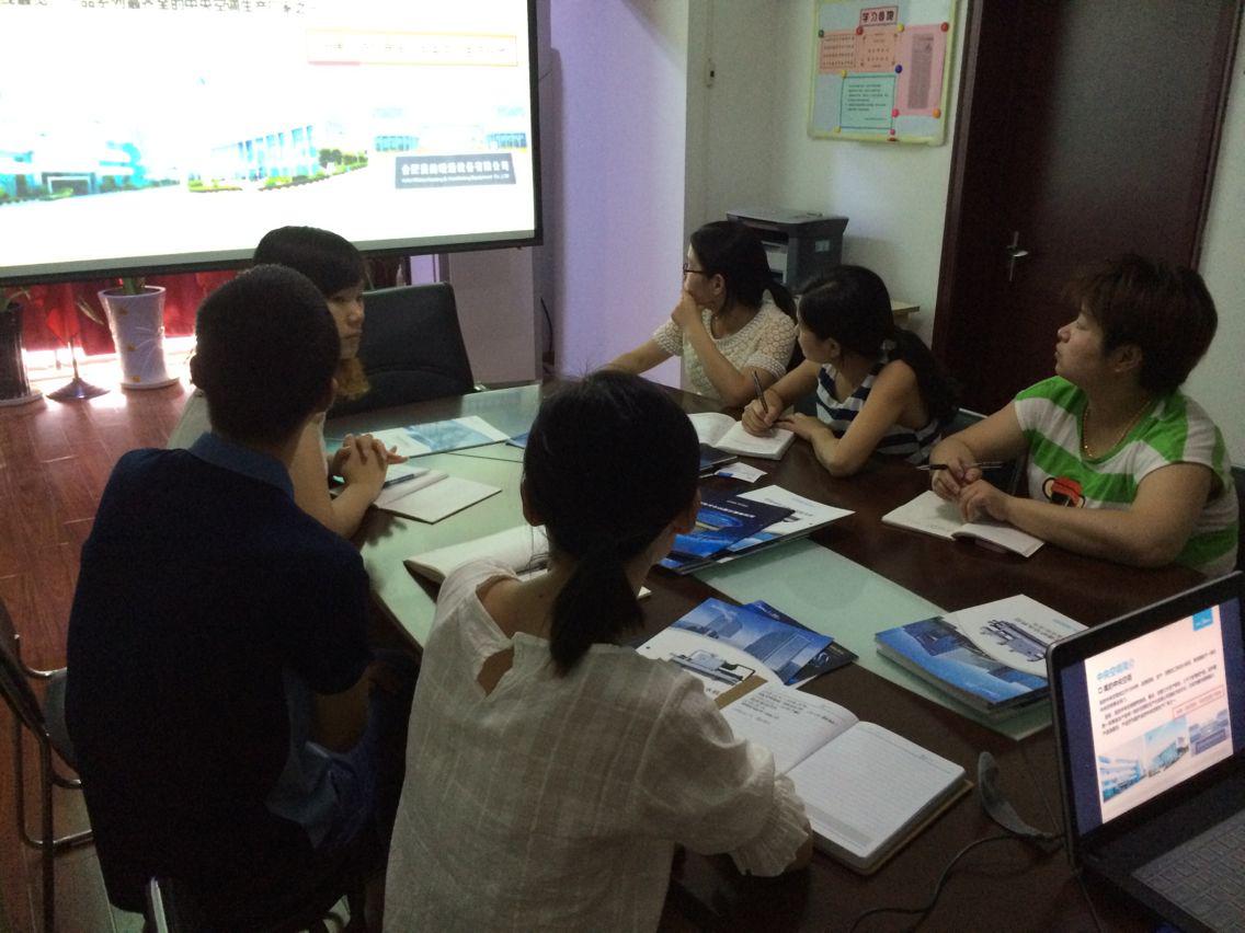 2014年6月17日公司邀请了美的空调公司三位有经验的专员来我司进行现场讲授,参加培训的有技术设计部、市场营销部和物资采购部的员工,培训专员着重给我们讲述了他们公司主要产品:高效降膜式螺杆冷水机组、风冷螺杆式冷(热)水机组、满液式螺杆冷水机组等设备的主要技术特点和在同行业中的优势。让我们很清晰和深入的了解了美的暖通这些年所取得的成绩以及为暖通行业所做的贡献。让我们认识到了我们国家的暖通发展速度之快,知名度在国际知名品牌中也占有一席之地。