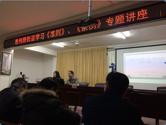 2015年12月4日,我司党支部成员姚立新、方薇,应邀参加了胜利路街道党工委就关于中央最新修定的《中国共产党廉洁自律准则》和《中国共产党纪律处分条例》两部重要党内法规专题讲座。此次专门邀请了中共安徽省纪委汪主任为主讲人,与大家一起对这两条法规进行深刻的解读和研讨。