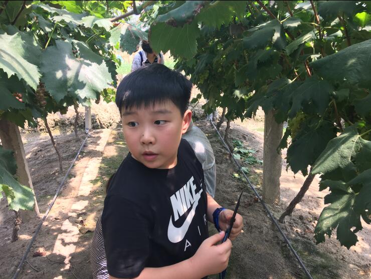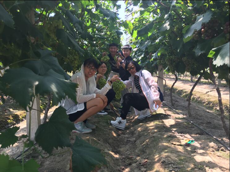 葡萄园主人热情地接待了我们。放眼望去大片的葡萄园,碧绿的叶蔓,晶莹剔透的葡萄,大家已经迫不及待想进去采摘了。顶着外面三十多度的高温,采摘棚内大家仍旧激情满怀,享受着田园风光和农家之乐,不一会儿便已收获满满。