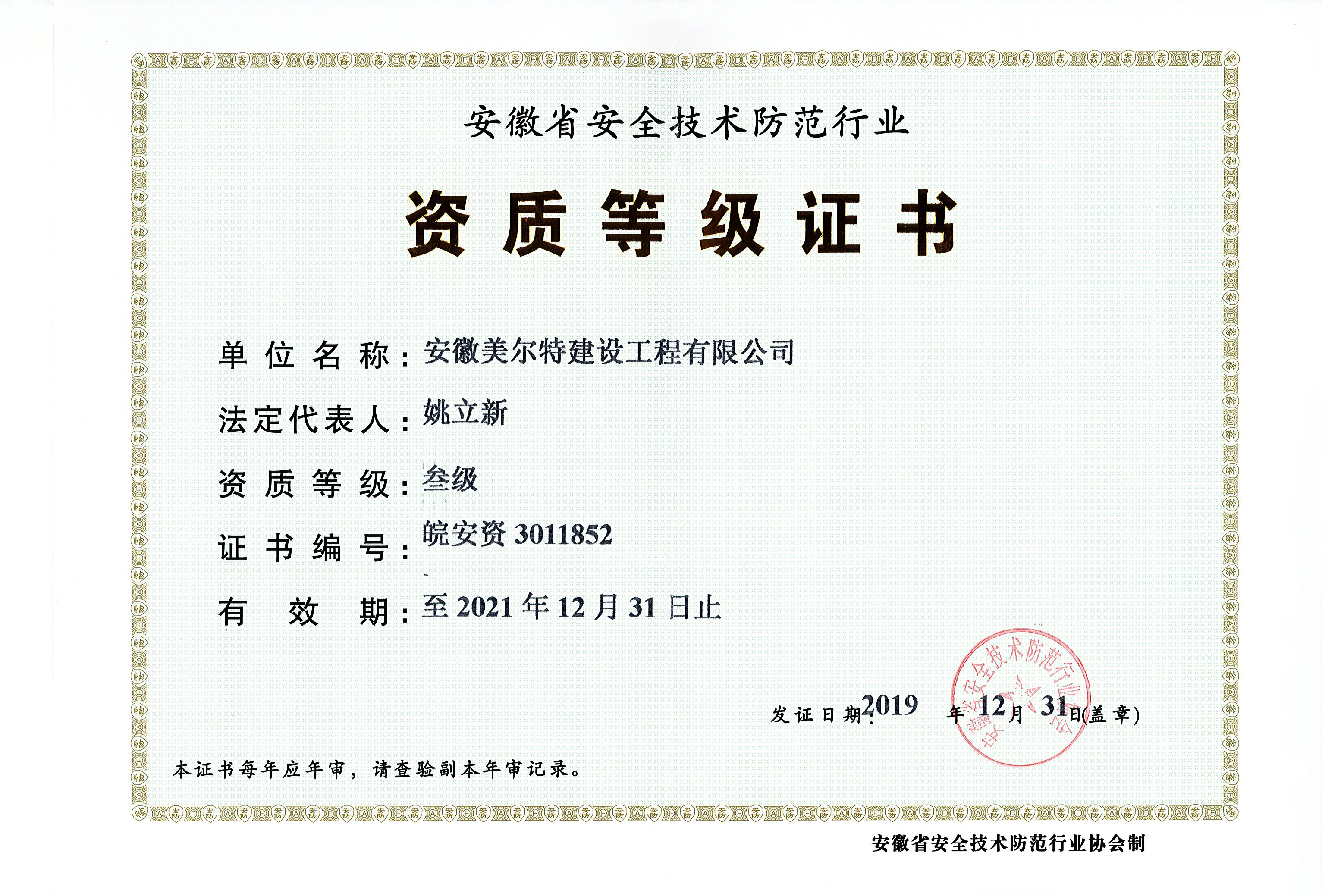 热烈庆贺我司成功申办“安徽省安全技术防范行业叁级资质”!
