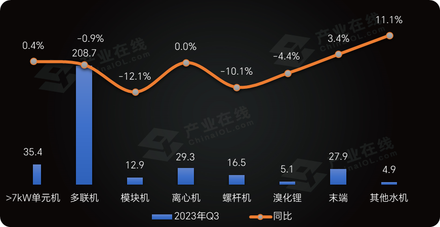 2023三季度中央空调细分产品内销走势对比(亿元)