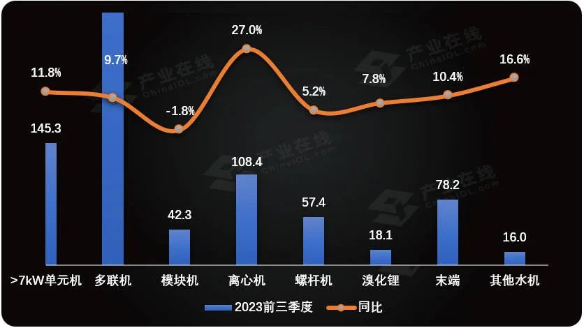 2023前三季度中央空调细分产品销售走势对比(亿元)