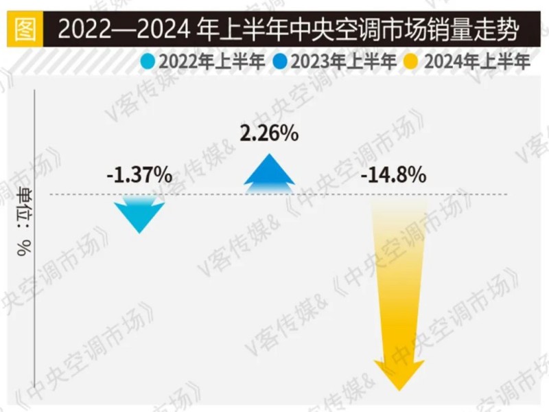 熬!熬!熬!对于大多数行业人士而言,2024上半年中央空调市场让人备受煎熬。受原材料涨价、房地产低迷、政府资金紧张等多重因素影响,行业经营环境变得更加严峻。据《中央空调市场》统计,2024年上半年,中央空调行业同比下滑14.8%。从数字上看,行业下行趋势明显,民间投资观望、工程进度放缓等诸多不利因素令厂商面临极大的考验。